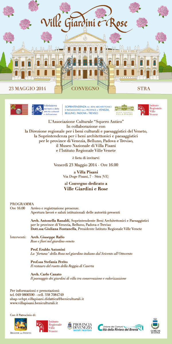 Il 23 maggio 2014 presso il Museo Nazionale Villa Pisani di Strà (Venezia) si terrà un convegno dedicato a VILLE GIARDINI E ROSE.